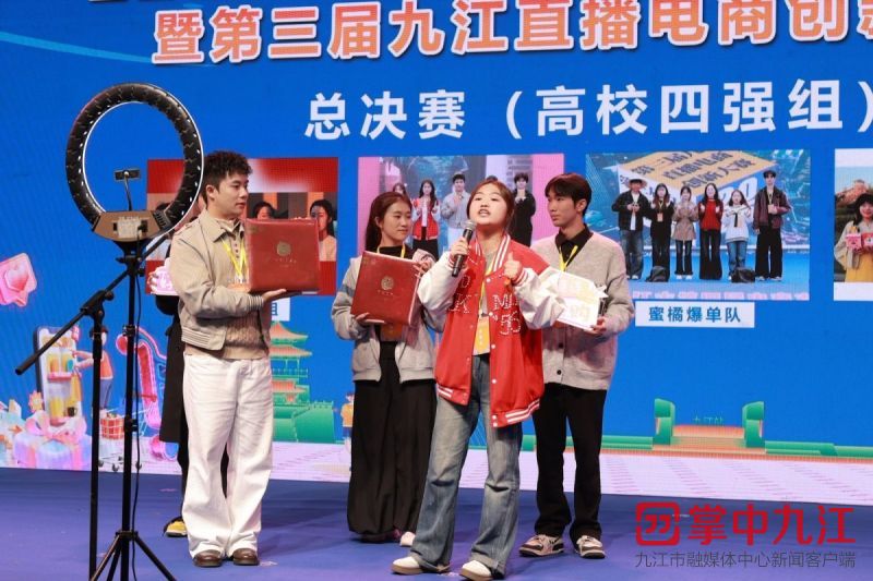 作为此次活动的核心环节,第三届九江直播电商创新大赛总决赛战况也十分激烈,吸引众多市民、游客围观。现场,通过初赛、复赛、决赛多轮比拼后脱颖而出的社会组4强和高校组4强队伍,走上总决赛舞台,进行直播演示,以直播带货语言组织能力,直播技巧,带货号召力、应变力等一决胜负,最终决出本届直播电商创新大赛一、二、三等奖。其中,陆大管家队(社会组第一名)、酱汁大队(高校组第一名)获大赛一等奖;彭泽一帆队(社会组第二名)、好运连连队(高校组第二名)获大赛二等奖;问露户外队(社会组第三名)、寻梦司马队(社会组第四名)、前途小队(高校组第三名)、蜜桔爆单队(高校组第四名)获大赛三等奖。