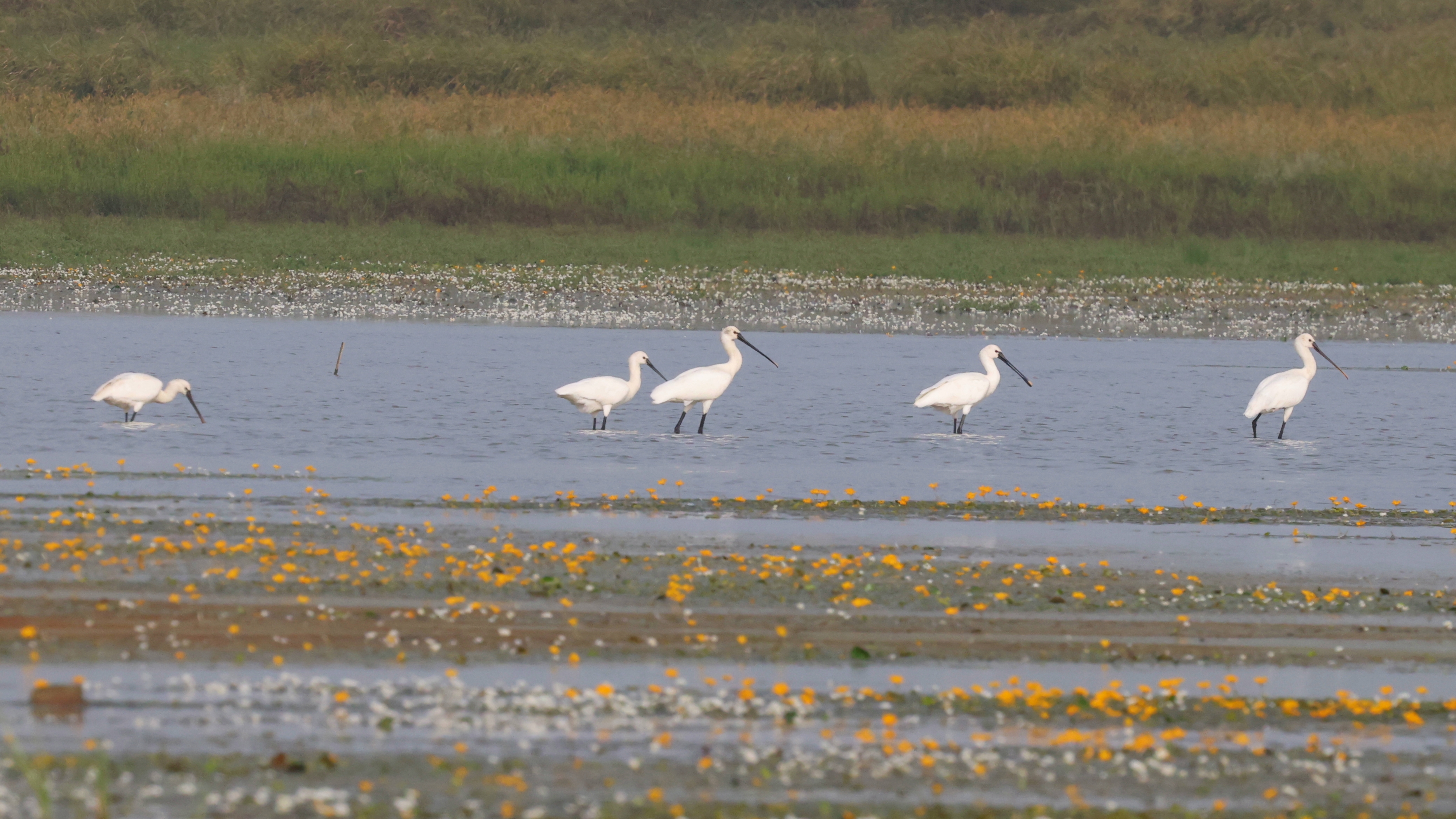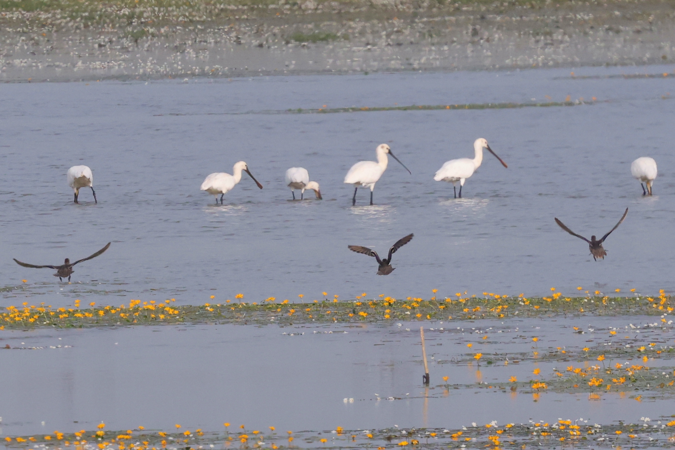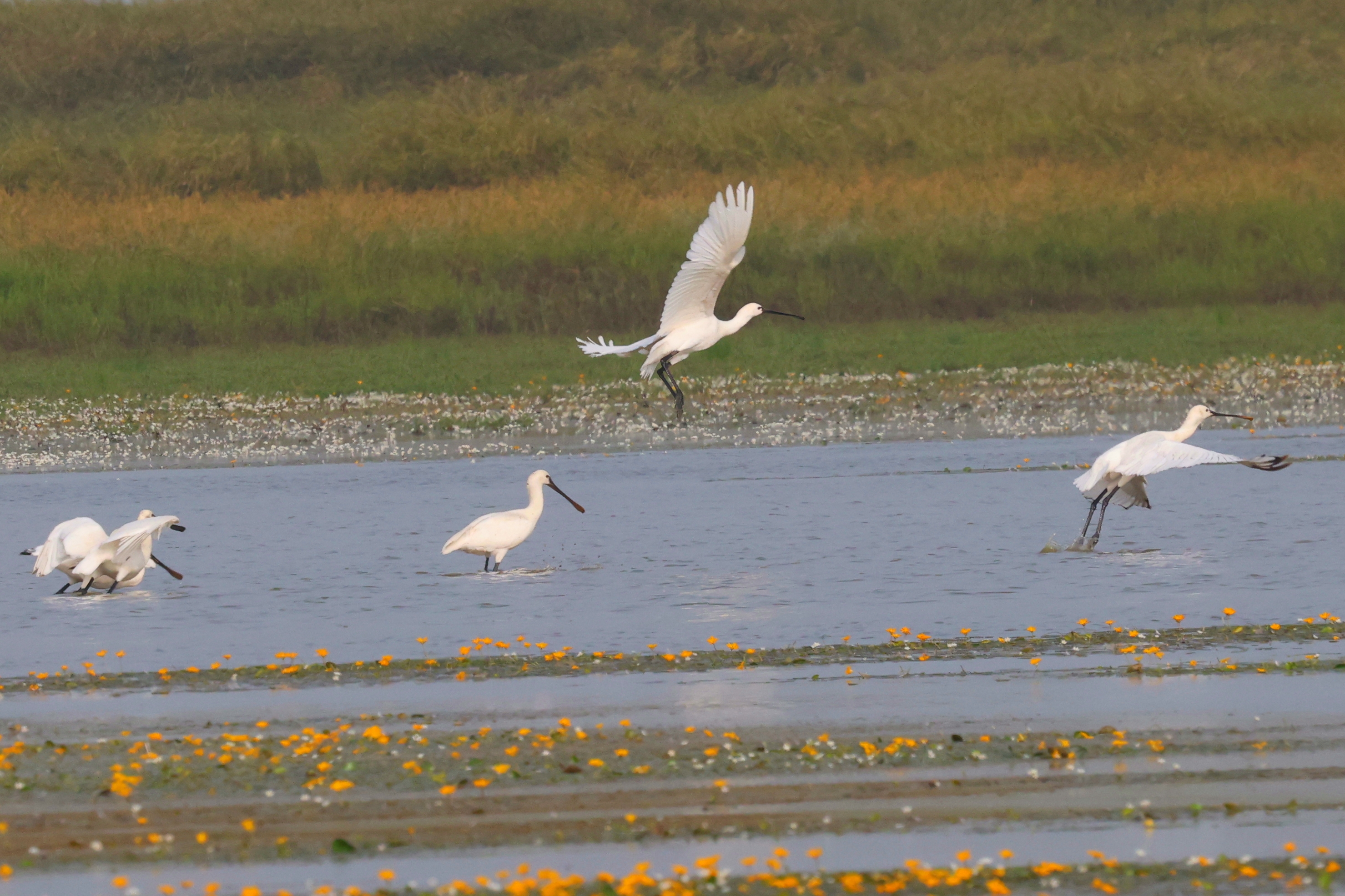 国庆当天,鄱阳湖迎来今秋首批珍禽候鸟白琵鹭