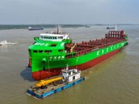 日前,由江西造船企业建造的740标箱纯电动敞口集装箱船在江西九江湖口成功下水。这是国内首制万吨级纯电动智能海船,可通过高压岸电充电,也能通过吊装箱式电池实现快速换电,标志着我国沿海集装箱运输正式迈入零排放、纯电动时代。