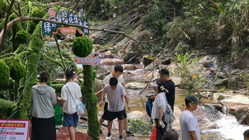 吴王谷景区内,山谷之幽与清茗之雅相得益彰,游客们在行酒台免费品茶,在灵泉瀑布集邮打卡,让这片天然秘境更添人文意趣。花溪水街流水潺潺,迷雾森林绿意盎然,让人仿佛走进现实版的绿野仙踪,为西海大峡谷增添一份动静相宜的绝美意境。而与之遥相呼应的花千谷,此刻正上演着一场秋日的视觉盛宴。百亩菊花盛情绽放,宛如一块块天然调色盘从山脚铺陈开来,游客们俏立花田打卡拍照,酝酿出这个季节最独特的记忆。