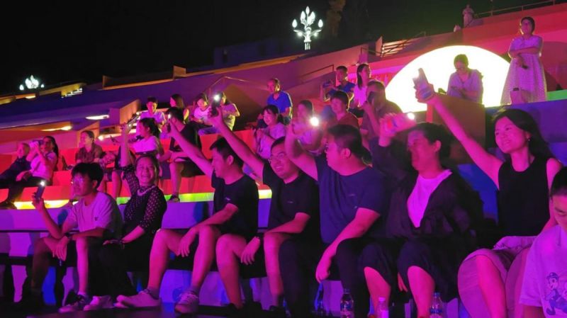 暮光集市的“国潮腔调”音乐会更是吸引了大量游客驻足欣赏。小提琴演奏抒情缠绵、歌曲声入人心、舞姿优美动人、互动趣味十足,从暮色四合至月光朦胧,现场合唱声、欢笑声不绝于耳,手机闪光灯如萤火闪烁,全场化作一片律动的浪漫星河。