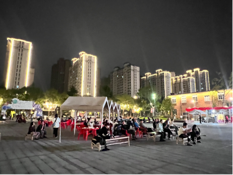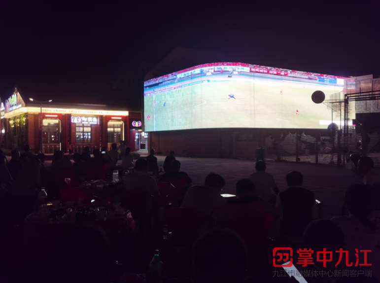 当夜,九动梦工厂火柴广场的大屏上正播放着激烈的比赛画面,闻讯而来的市民或坐在竹床、板凳上,或三五好友喝酒聊天,却无一不关注着比赛。“九江队,进一个!”不知哪个球迷起了头,海啸般的呐喊声滚滚而来,将每一个人的声音都卷入其中,汇聚成不可抵挡的滔天声浪。“两队各有千秋,九江队实力略胜一筹。”郭继儒仔细分析道,“九江队得分射手多,可以做到多点开花,我期待九江队取胜。”