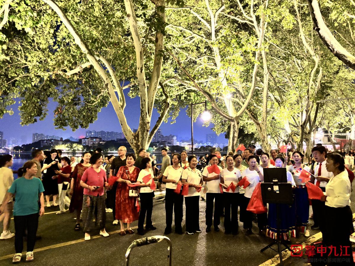 现场,来自湓浦街道梅绽坡社区的飞鹰艺术团的成员们与居民同台演唱,大家挥舞着小国旗,汇成一片红色的海洋。“很激动,也很开心,为我们的祖国日益强大由衷地感到骄傲。”飞鹰艺术团成员周慧珍激动地说。