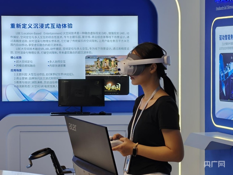 采访团成员体验VR设备(央广网实习记者 张德浩 摄)
