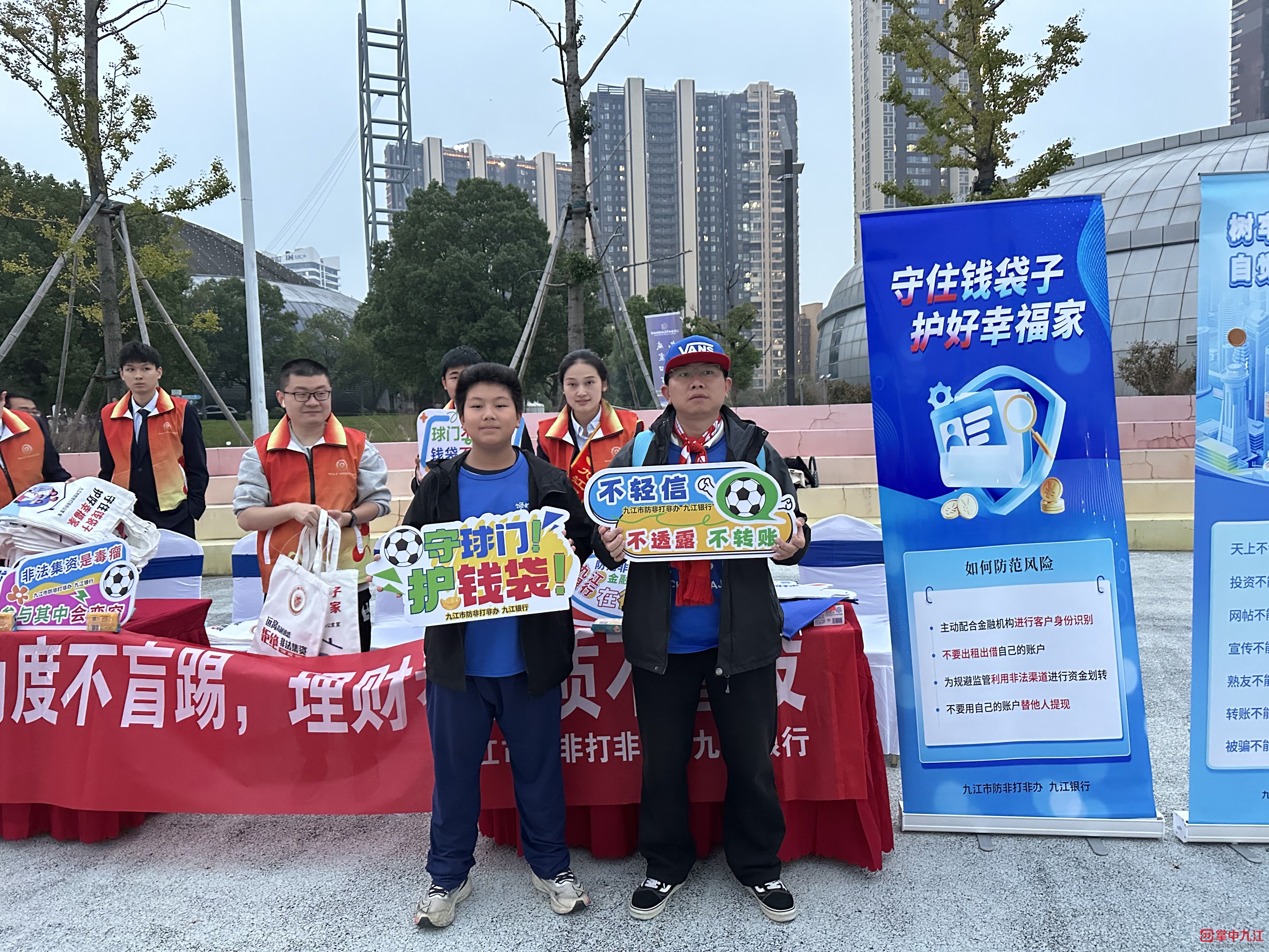 10月26日,九江市政府办公室携手九江银行在赣超足球赛现场掀起一场以“守住钱袋子,护好幸福家”为主题的防非宣传热潮。现场三万余名观众热情参与,防非知识与赛事激情同频共振,营造出浩大的宣传声势,覆盖了每一位观赛群众。