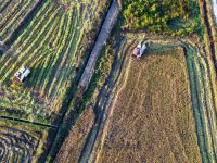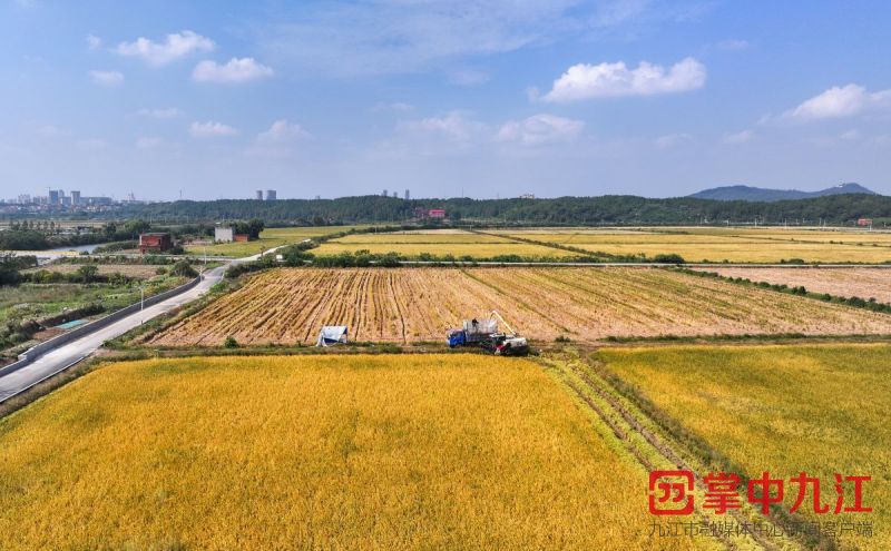 近日,共青城市7500亩晚稻已陆续成熟,进入收割期,农户们抢抓晴好天气开镰作业,机声隆隆中,一幅稻浪翻滚、颗粒归仓的喜人丰收画卷在乡间田园徐徐展开。图为共青城市金湖乡五合村,收割机在金色的稻浪中来回穿梭,精准完成切割、脱粒、秸秆粉碎等环节,作业高效又顺畅。该村共种植3000多亩晚稻,预计11月上旬全部收割完,亩产可达1400斤左右。