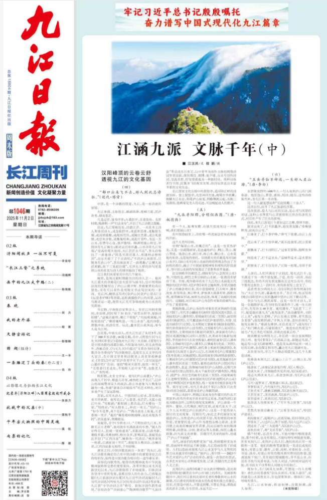 唐宋之后,中国诗歌流淌出一条宽广的大江,而九江诗歌在确定自己在中国诗歌中的重要地位之后持续前行,始终是中国诗歌合唱中的一道华彩乐章。