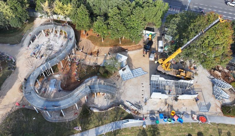 11月18日,在儿童友好公园绿地改造工程(龙开故道公园)施工现场,工人正借助大型机械设备进行儿童游乐设施的安装,户外课堂、绿化等施工也在同步进行。此次改造主要致力于打通观湖视线,增设滨水阶梯驳岸、秋千廊架和儿童活动专区,并对老旧铺装、护栏和文化小品进行翻新。改造完成后这里将以更加开阔的视野、更加安全的游戏设施和更加宜人的环境,成为周边家庭亲子休闲与文化体验的好去处。