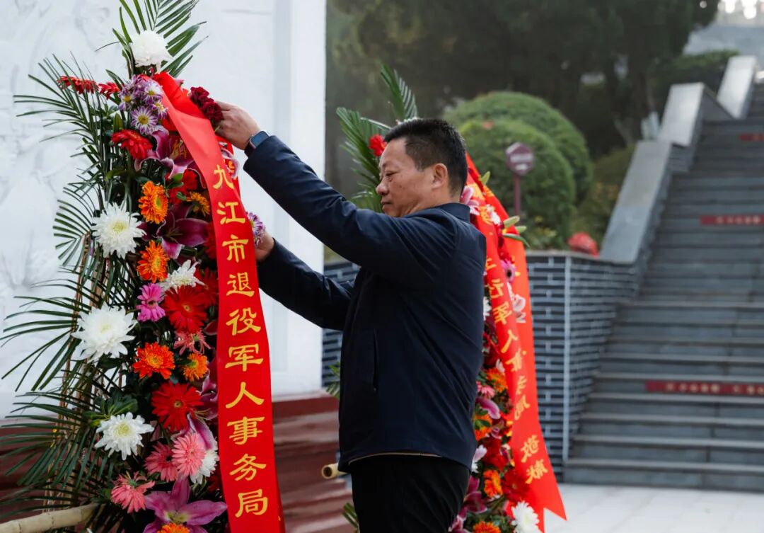 退役军人代表迈着整齐的步伐,将寄托哀思的花篮稳稳摆放在纪念墙前。市退役军人事务局党组书记、局长刘金梅上前仔细整理花篮挽联,挽联上“革命先烈永垂不朽”的字样在阳光下格外醒目。随后,全体人员向英烈三鞠躬,依次缓步瞻仰烈士纪念墙与烈士墓,在一张张定格历史的照片、一座座镌刻忠魂的墓碑前,追思先烈们浴血奋战的峥嵘岁月。