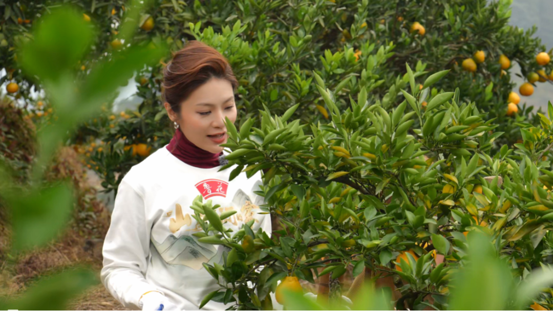 “山水小分队”深入橘园,在村民的指导下学习辨识成熟柑橘的技巧——看果皮色泽、摸果实硬度、闻果香浓度,亲手采收枝头饱满的果实。