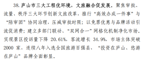 案例六:庐山市三大工程优环境,文旅融合促发展。