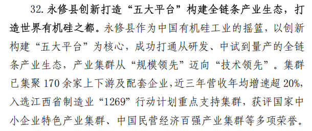 案例四:永修县创新打造“五大平台”构建全链条产业生态,打造世界有机硅之都。