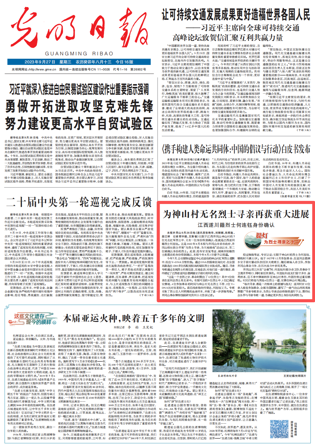 2023年9月27日《光明日报》01版