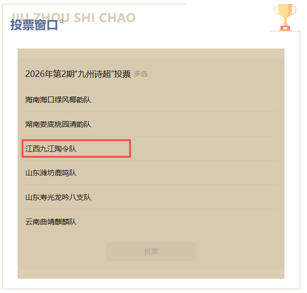 为江西九江陶令队投出宝贵的一票