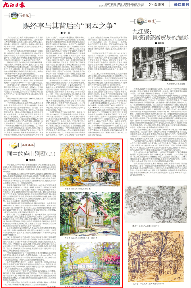 见有旁观者赞赏,邢世平一边绘画一边回应着。原来,这位观众是邢世平所绘“和塾”即爱国将领张治中旧宅的主人。他赞叹说,庐山别墅需要我们保护和维修,也需要用画笔记录,你们这些画和别墅一样,将来都是庐山历史人文的组成部分。
