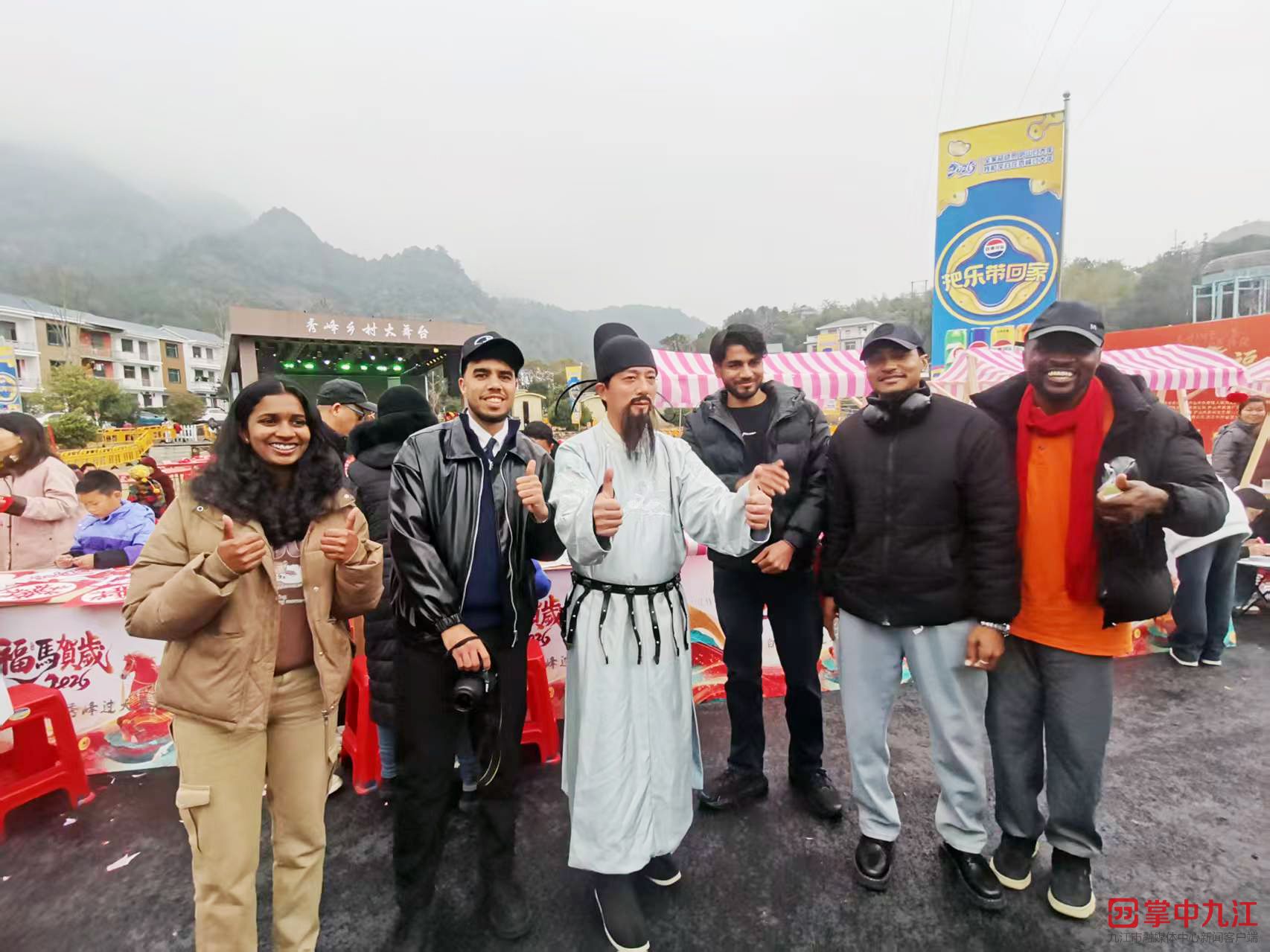 随后,热闹的非遗年味体验正式开启。留学生们分组参与、动手实践,在食材加工、手包饺子中感受中国团圆美食的乐趣;品擂茶、喝米酒、尝糖葫芦、吃庐山云雾茶饼,在舌尖品味庐山特色风味。大家还拿起红纸剪刀创作剪纸,挥毫书写春联,在木柴上认真写下新年愿望,将新春的美好祝福融入传统年俗之中。