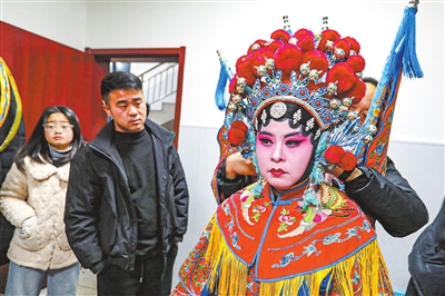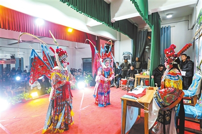 在庐山市,最流行的戏曲,就是当地的国家级非物质文化遗产代表性项目西河戏。每到春节期间,也是农闲时候,当地乡村都会搭建戏台,村里人上台,咿咿呀呀唱上几台戏,台上乡音婉转,台下喝彩阵阵,既让村民过了戏瘾,更烘托出红火热闹的节日氛围。2月7日至9日(腊月二十至二十二),在华林镇桃林村上湾李家活动中心,村民们连续三晚登台,自演西河戏,为乡亲们送上了一场年味十足的文化大餐。