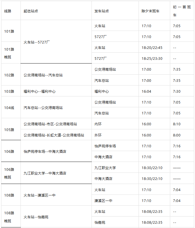 2026年春节即将来临,市公交集团公司衷心感谢全市人民一年来对我公司的关注、关心和支持,祝全市人民新春快乐、身体健康、阖家幸福!为方便市民在除夕和初一的乘车,现将我公司各营运线路除夕末班车和初一首班车营运时间通告如下: