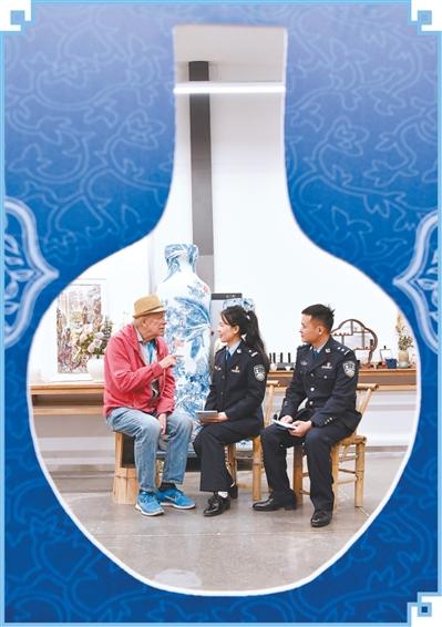 景德镇市公安局珠山分局民警与雷菲力沟通交流公共服务政策。石卫明摄