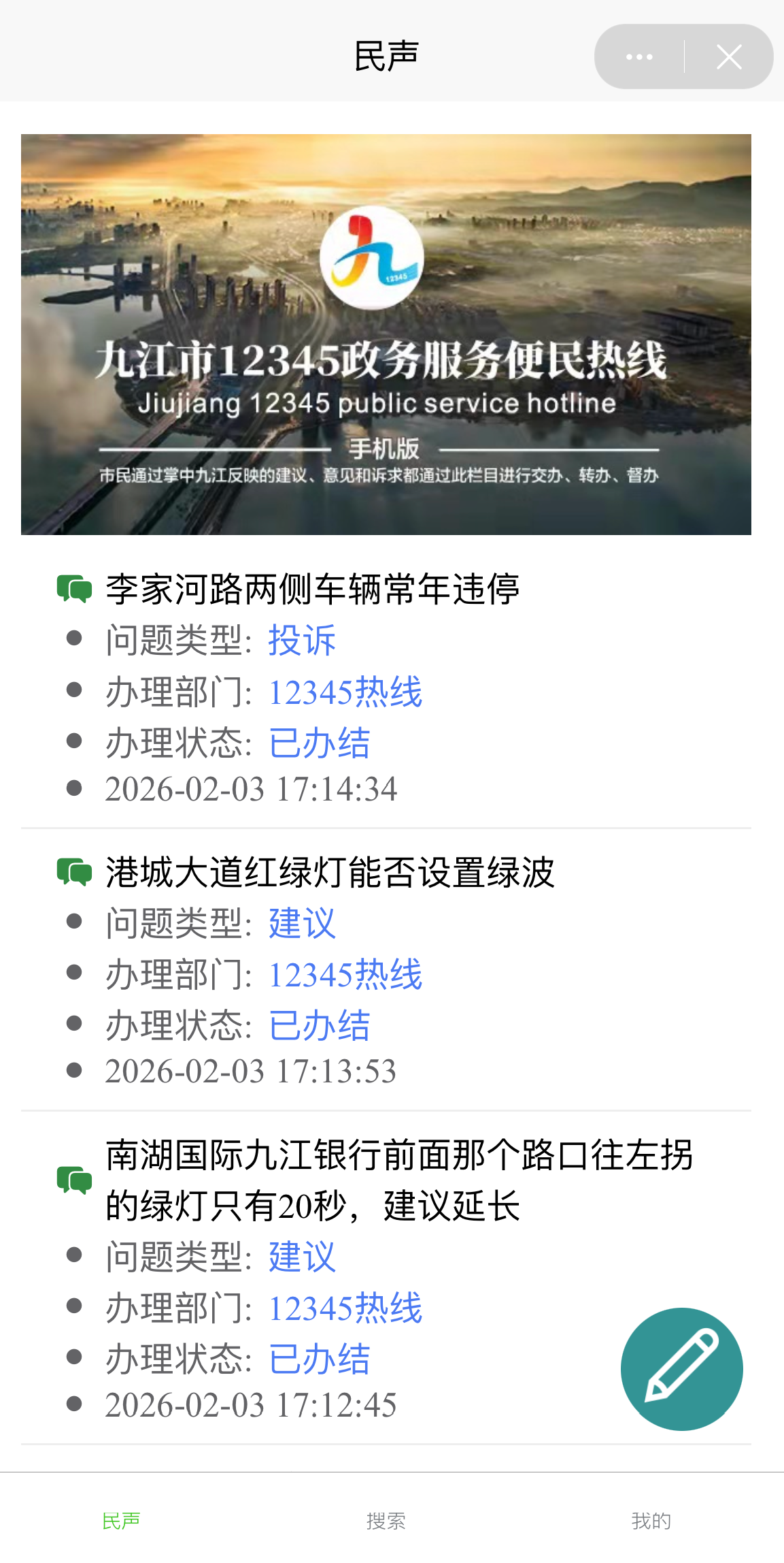 ▲在掌中九江app页面下端找到【民声】频道