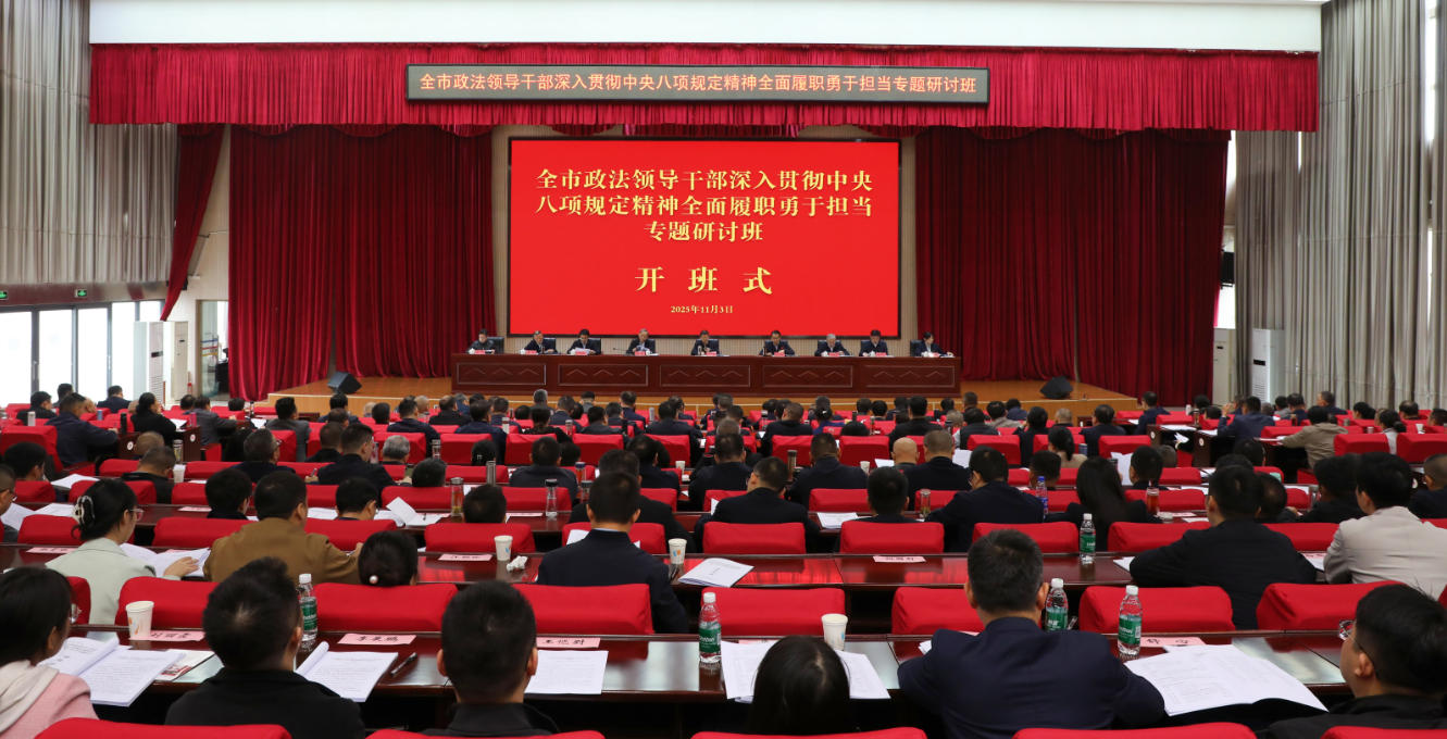 2025年11月3日,全市政法领导干部“深入贯彻中央八项规定精神 全面履职 勇于担当”专题研讨班在市委党校开班