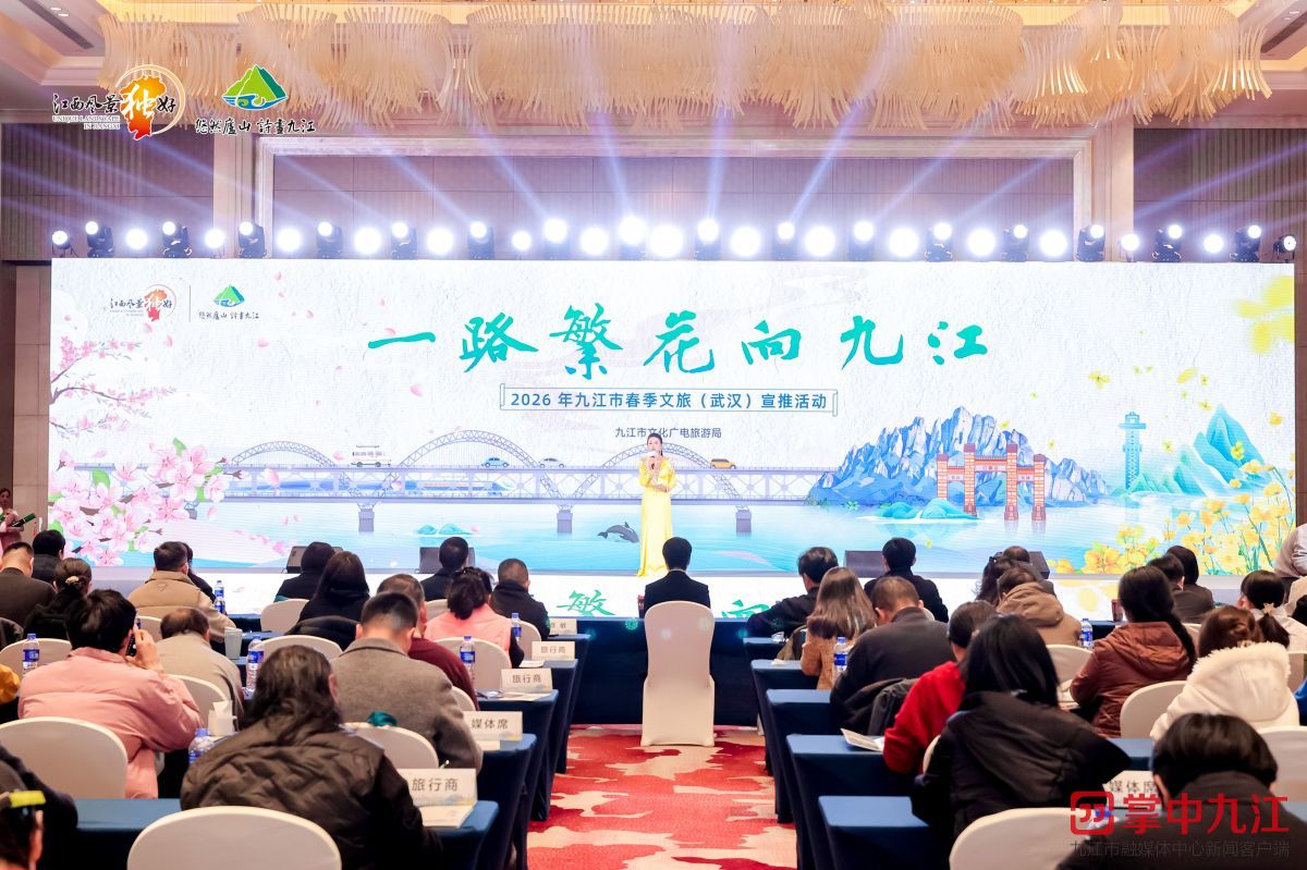 为进一步深耕武汉城市群客源市场,持续提升“悠然庐山 诗画九江”城市文旅品牌知名度和影响力,3月10日上午,“一路繁花向九江”2026年九江市春季文旅(武汉)宣传推介会在武汉顺利举行,九江市相关部门、重点景区代表,武汉市文旅企业、旅行社代表及媒体嘉宾等200余人齐聚一堂,共叙情谊、共话合作。