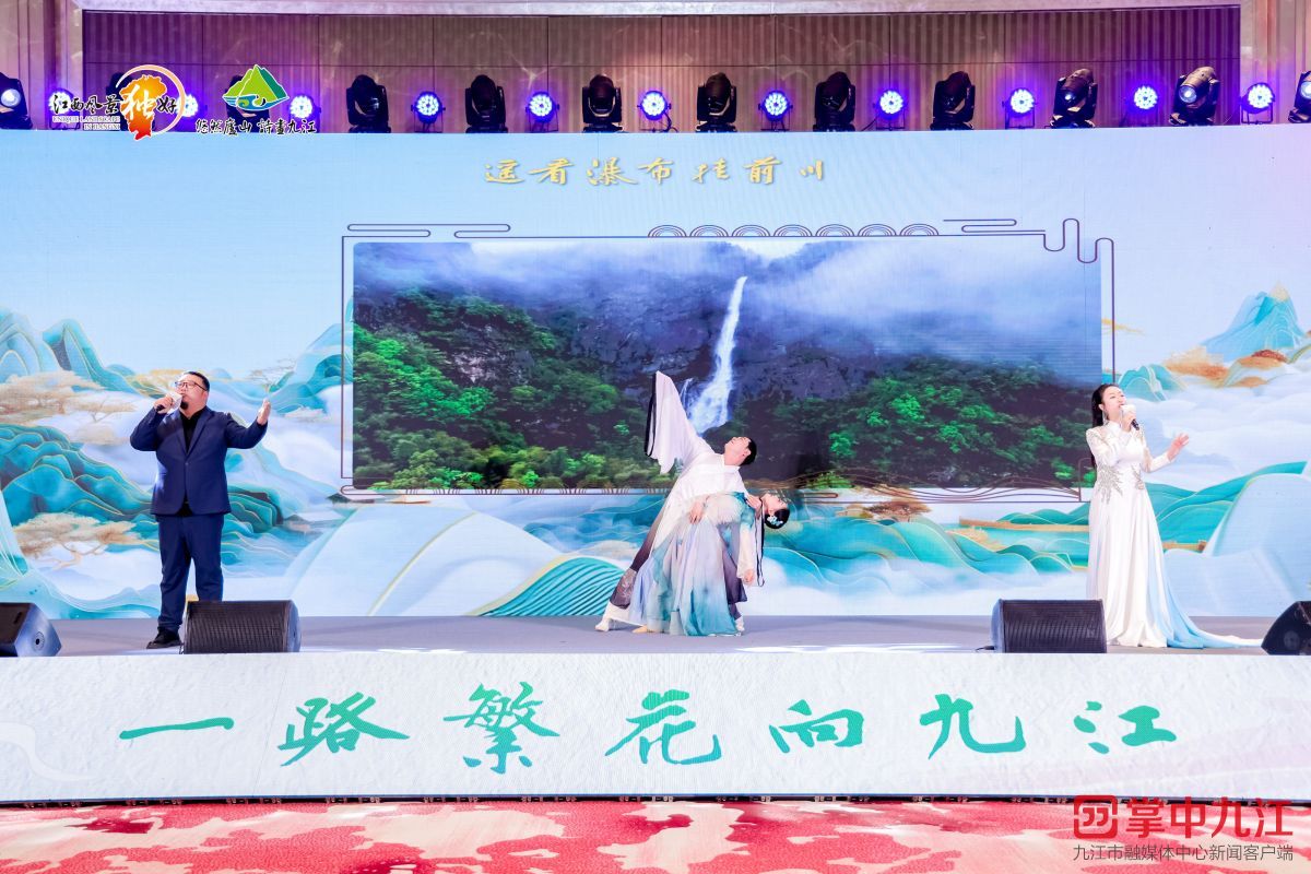 现场掌声中,九江特色节目表演轮番上演:歌舞《又见南山》将九江非遗与山水画面融入韵律中,歌舞《望庐山瀑布》将千古名句化作视听盛宴,情景表演《快乐九江》则以欢声笑语和市井烟火气,生动演绎了九江的城市活力。穿插其间的互动抽奖环节更是将现场气氛推向高潮,特色文创礼品让嘉宾们惊喜不已。