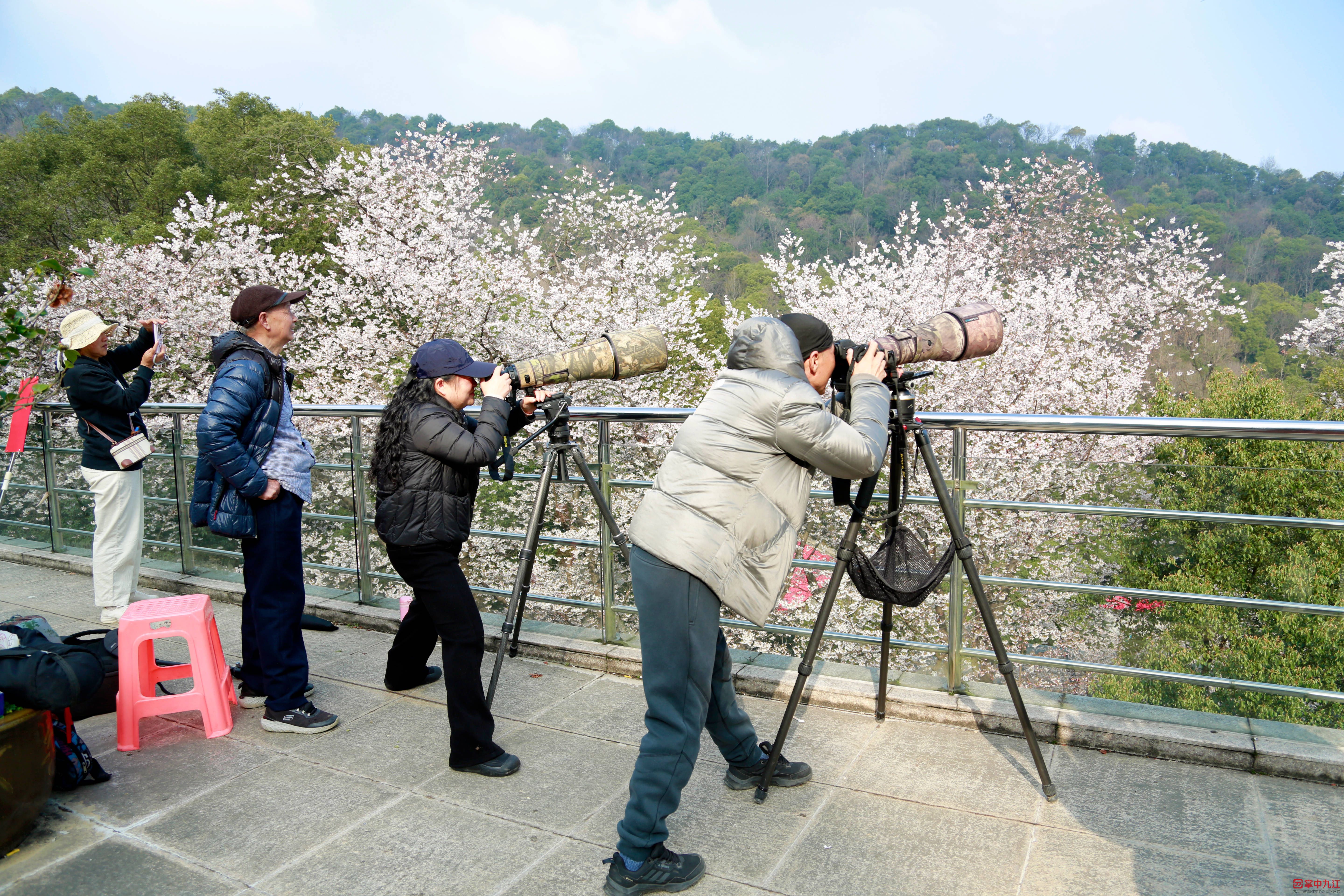 清晨的方竹寺,山间薄雾未散,静谧清幽,正是捕捉自然意趣的好时机。观景平台上,摄影爱好者们早已架好长焦镜头,屏息静待。江西省摄影家协会会员何祥梅手持相机,笑意盈盈:“一早过来就没白等,樱花枝头的鸟儿特别活跃,叉尾太阳鸟、绣眼鸟都拍到了,它们停在花瓣上的瞬间,真的太灵动了。”阳光在花瓣上投下斑驳光影,鸟儿振翅飞掠,啼声清脆,“良禽择木而栖”的诗意,在此刻成为眼前触手可及的美好,让每一位守候的摄影人都心生满足。