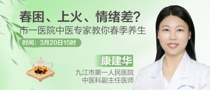3月20日15时,掌中九江《浔问》栏目特邀九江市第一人民医院中医科副主任医师康建华在线答疑,手把手教你春季养生。