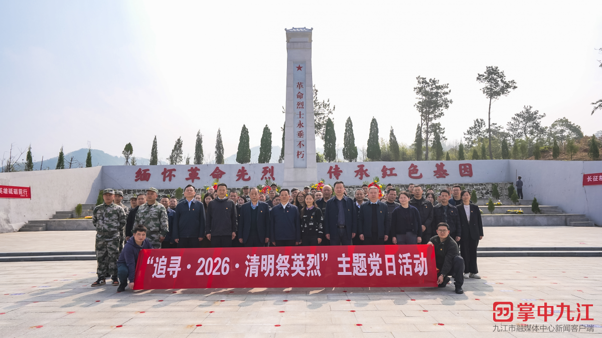 为纪念红军长征胜利90周年,深切缅怀革命先烈的不朽功勋,传承弘扬英烈精神,3月25日上午,市退役军人事务局在濂溪区赛阳镇汤桥烈士陵园举行“追寻·2026清明祭英烈”主题祭扫活动。九江市、濂溪区退役军人事务局和赛阳镇党员干部,烈属、退役军人代表共100余人参加活动。