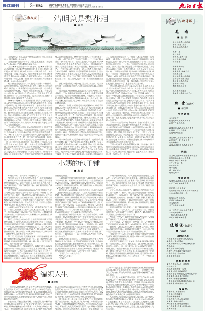 后来和父母聊起过往,爸爸说,那几年,城里像小姨这样下岗再创业的人很多。街头的包子铺、巷尾的蔬菜摊、路边的小卖部,一家一家支起来。如今,我依然记得那个清晨,我吃下的包子的味道,那里面藏着那个年代的记忆,是小姨和小姨父自强不息的身影,是妈妈腾出房子的决断,是街坊邻里端着蓝边碗喝粥的热闹,是无数像小姨一样的人,在时代的转弯处,用自己的双手,一个一个捏出来的好日子。