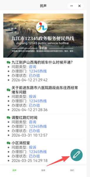 ▲输入内容就可以通过掌中九江向政府部门提问了!