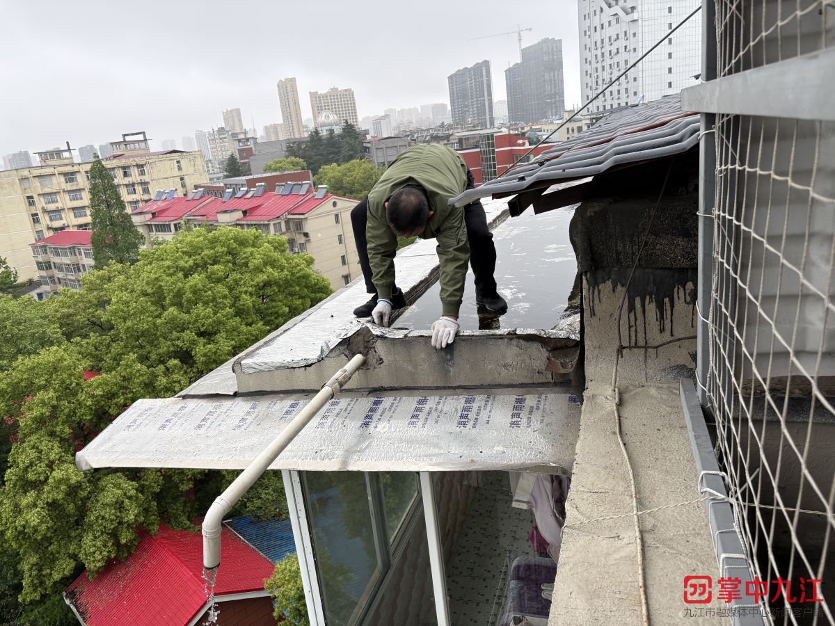 “前两天下大雨,屋顶积水排不出去,屋里墙壁都洇湿了,真是急得不行。”4月14日上午,家住九江市浔阳区人民路街道琥珀山社区的徐大姐回忆起家中渗漏的情形仍心有余悸。令她没想到的是,自己抱着试试看的心态找到社区求助后,社区党支部书记王佐二话不说,系上安全绳爬上8楼楼顶,徒手疏通堵塞物,及时化解了居民的烦心事。