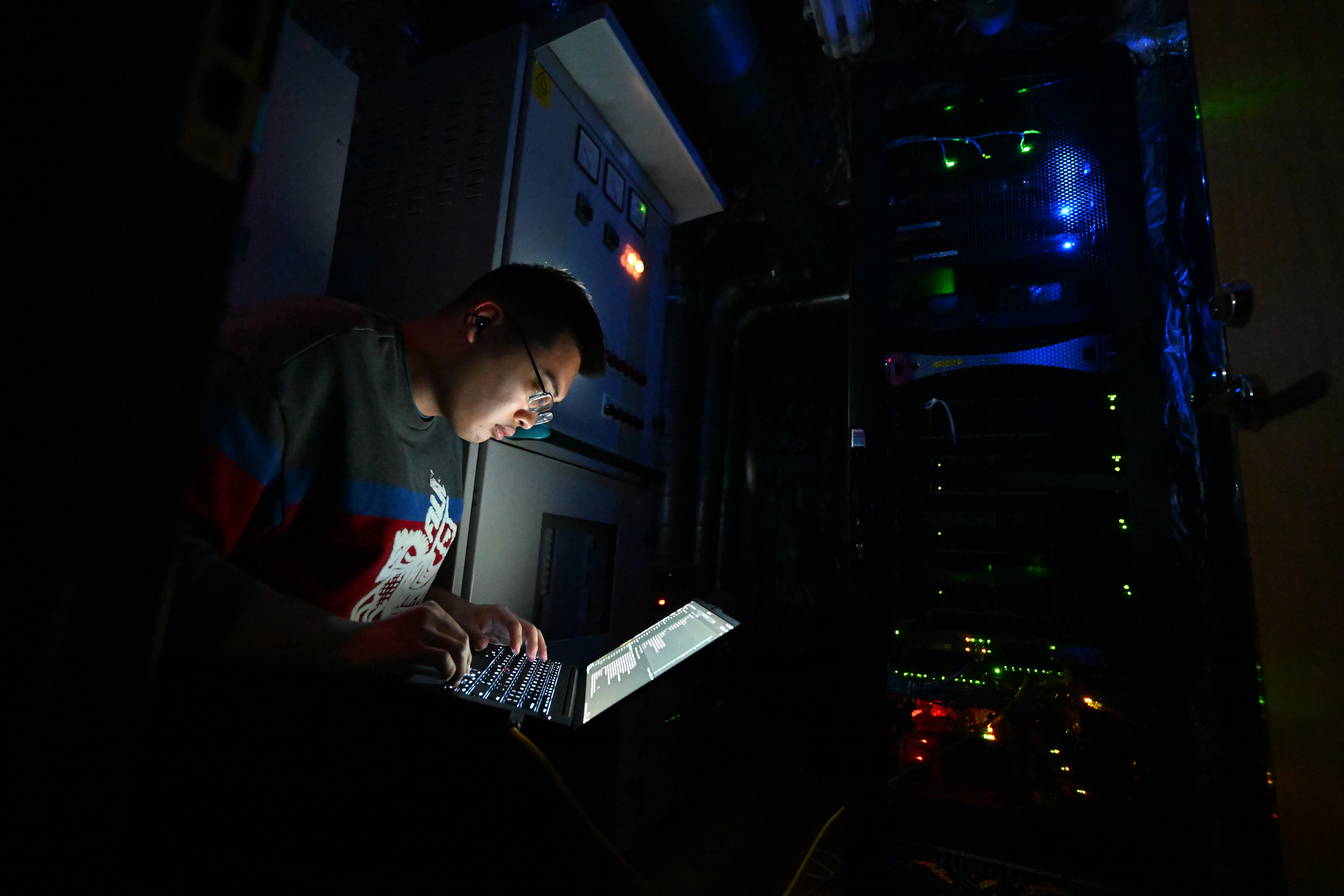 2025年12月29日,工作人员在调试“宁远电鲲”轮的智能集成平台。