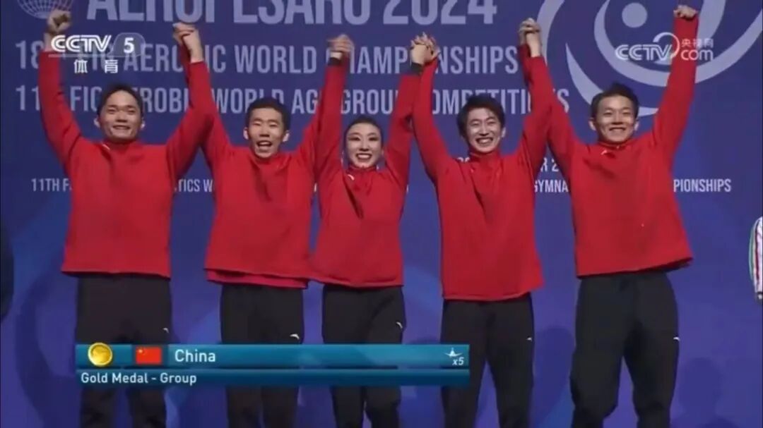 天道酬勤,在2024年世锦赛上,中国队成功突围,三人操、五人操项目双双夺金,团体项目摘铜,让五星红旗在赛场高高升起。