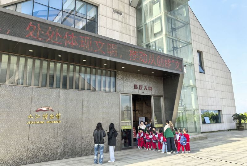 “五一”假期临近,文博园景区每天都会迎来不少游客。景区内秩序井然,尤其在博物馆等核心场馆,文明参观已成为游客的自觉行为,一道流动的“文明风景线”格外亮眼。走进九江博物馆,展厅内安静有序。游客们或驻足细品文物,或轻声交流观展心得,自觉将手机调至静音,拍照时关闭闪光灯。在热门展品前,大家主动排队、耐心等候,礼让成为默契。